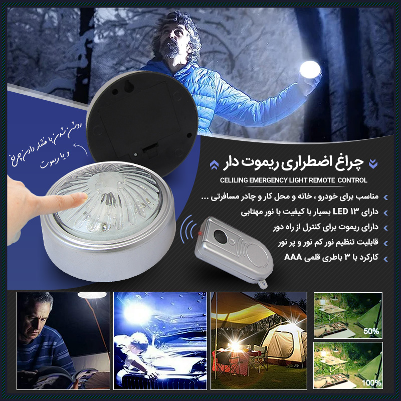 چراغ اضطراری ریموت دار شامل 13 LED به علاوه یک ریموت کنترل است